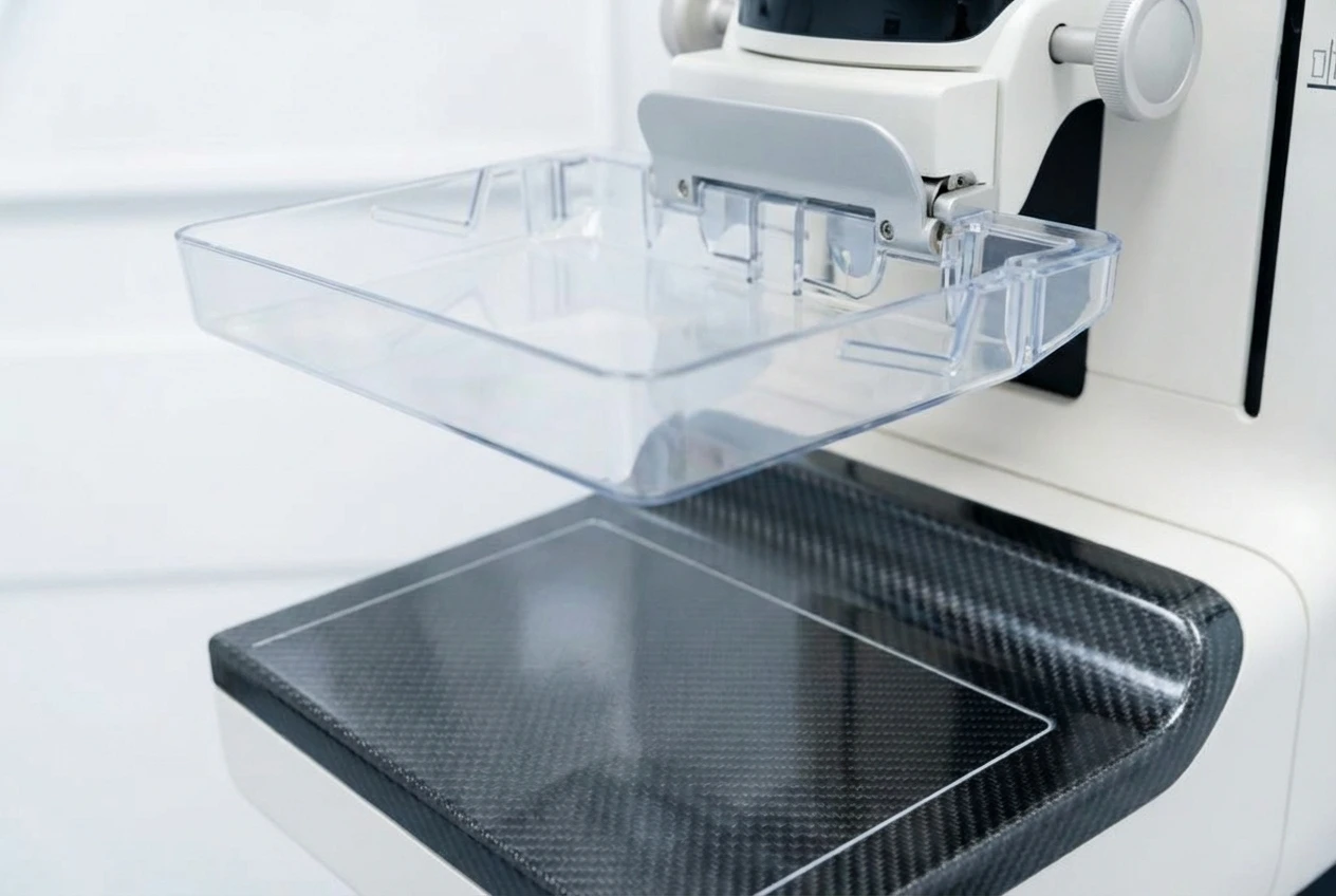 Το ειδικά σχεδιασμένο καμπυλωτό πίεστρο SmartCurve προσαρμόζεται στο φυσικό σχήμα του μαστού, μειώνοντας την πίεση και τον πόνο κατά τη διάρκεια της εξέτασης, χωρίς να θυσιάζεται η ποιότητα της εικόνας.